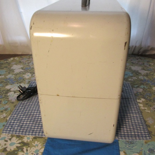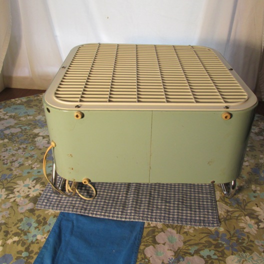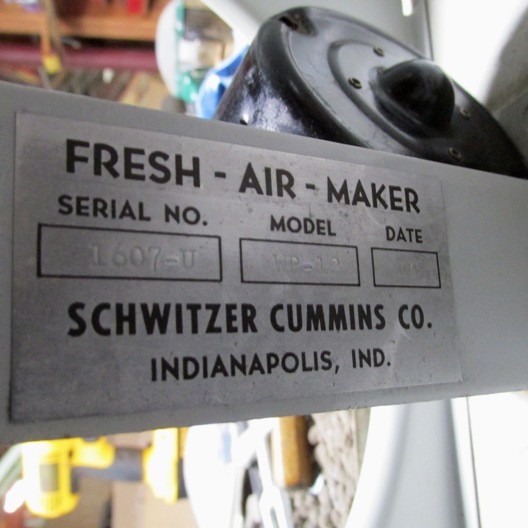 For your viewing pleasure is an uncommon 12 inch 2 speed non reversible Fresh Air Maker vintage box fan made by Schwitzer-Cummings Company of Indianapolis, Indiana. They made electric fans in the 1940s thru the 50s. It is 14 inches wide, 14 inches high, and is all metal construction. It is small but, well built. Its overall cosmetic condition is good considering its age and usage. The color is a two tone pale gray and blue gray. Steel cabinet does not have any dents or heavy rust, and the painted steel guards are free of any broken welds or bent wires. There is very minor paint loss, scuffs, and light scratches from age and usage, but retains over 95% of its original paint. Bottom of the fan is solid with no rust. The steel blade does not have any creases and is balanced. Universal motor has been cleaned, inspected, serviced, and tested for over. It ran very smooth, with no issues. Two speed switch functions properly. The original power cord and plug are in good shape with no issues. This is a very well constructed and hi quality fan. This is a very desirable and hard to find box fan. It’s a must for that avid vintage box fan collector or as a nice working décor gem for your mid century home. There is a short video for the fan in out videos section.